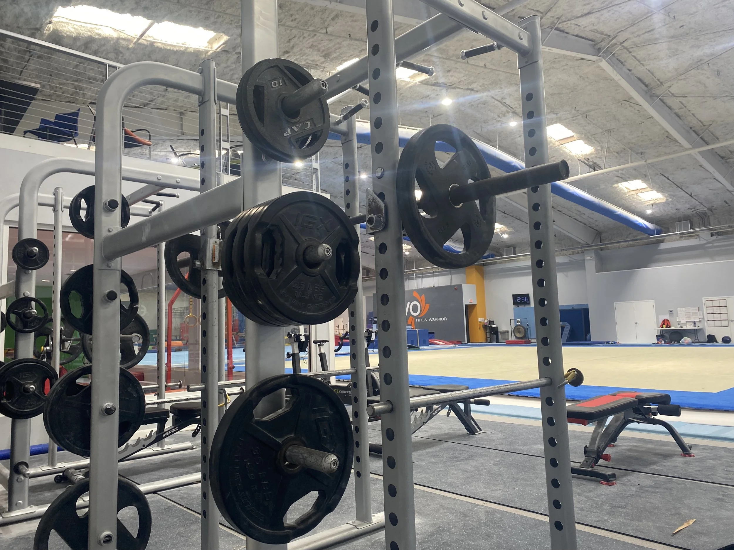 Our strength & conditioning area is built to augement each athlete’s abilities in gymnastics, strength, fitness, and recovery. With two fully loaded squat racks, several barbells, kettebells, dumbbells, cable machine, benches, and trap bars, our facility includes everything that an elite athlete needs to reach the next level!